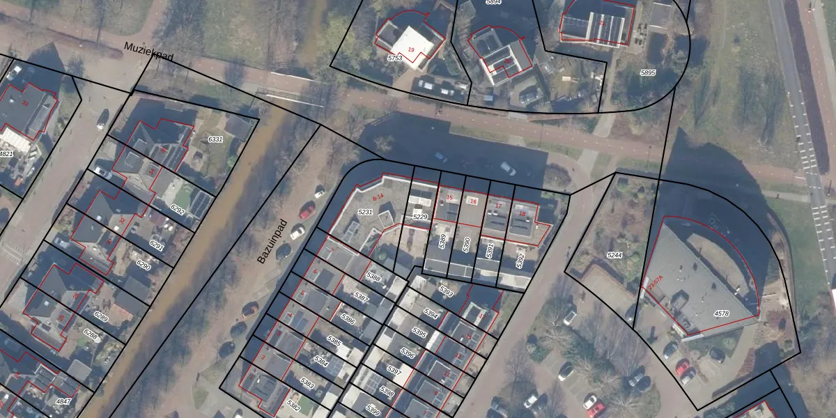 Het perceel waarop Bazuinpad 12 staat heeft een oppervlakte van 165 m². Dit is een middelgroot perceel. De perceeloppervlakte wordt geregistreerd door het Kadaster. Gedetailleerde informatie over de maten van dit perceel kunt u vinden in het rapport Kadastrale kaart met maatvoering van Bazuinpad 12.