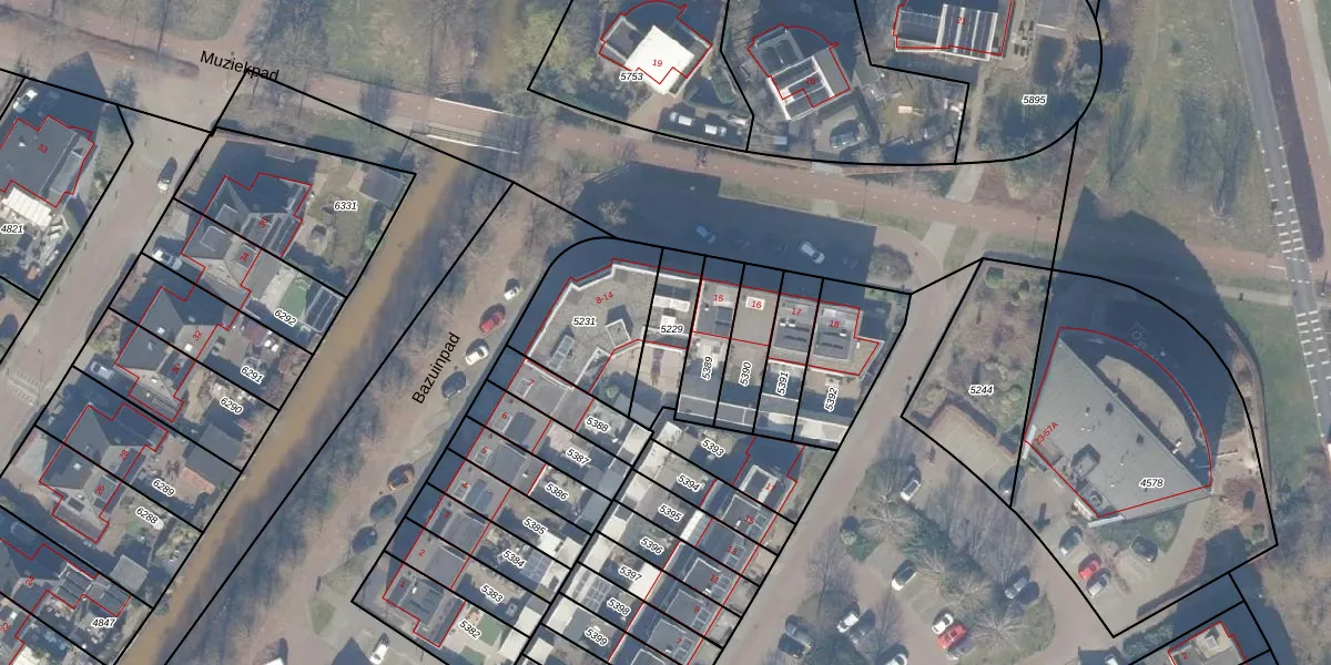 Het perceel waarop Bazuinpad 14 staat heeft een oppervlakte van 165 m². Dit is een middelgroot perceel. De perceeloppervlakte wordt geregistreerd door het Kadaster. Gedetailleerde informatie over de maten van dit perceel kunt u vinden in het rapport Kadastrale kaart met maatvoering van Bazuinpad 14.