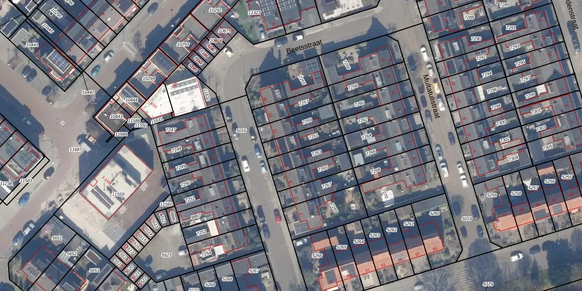 Gebruik de zoekbalk of klik op een perceel voor informatie over de adressen binnen dit perceel.