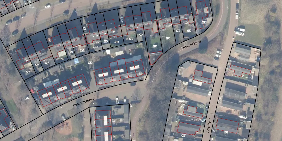 Het perceel waarop Belcantodreef 2 staat heeft een oppervlakte van 2348 m². Dit is een zeer groot perceel. De perceeloppervlakte wordt geregistreerd door het Kadaster. Gedetailleerde informatie over de maten van dit perceel kunt u vinden in het rapport Kadastrale kaart met maatvoering van Belcantodreef 2.