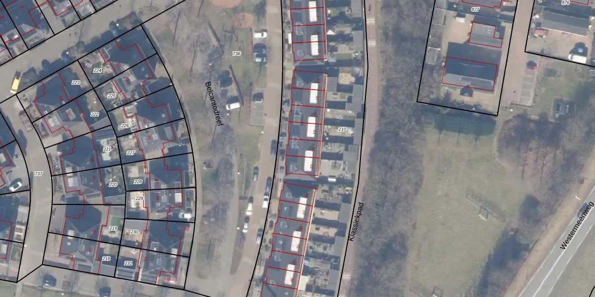Het perceel waarop Belcantodreef 21 staat heeft een oppervlakte van 3561 m². Dit is een zeer groot perceel. De perceeloppervlakte wordt geregistreerd door het Kadaster. Gedetailleerde informatie over de maten van dit perceel kunt u vinden in het rapport Kadastrale kaart met maatvoering van Belcantodreef 21.