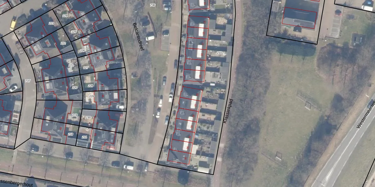 Het perceel waarop Belcantodreef 25 staat heeft een oppervlakte van 3561 m². Dit is een zeer groot perceel. De perceeloppervlakte wordt geregistreerd door het Kadaster. Gedetailleerde informatie over de maten van dit perceel kunt u vinden in het rapport Kadastrale kaart met maatvoering van Belcantodreef 25.