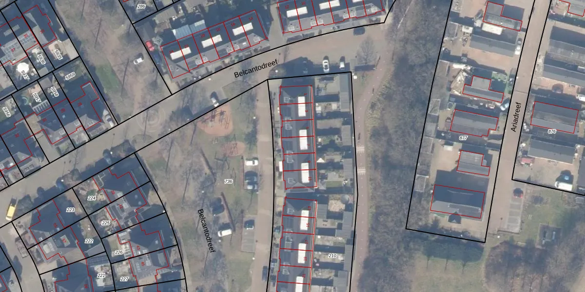 Het perceel waarop Belcantodreef 7 staat heeft een oppervlakte van 3561 m². Dit is een zeer groot perceel. De perceeloppervlakte wordt geregistreerd door het Kadaster. Gedetailleerde informatie over de maten van dit perceel kunt u vinden in het rapport Kadastrale kaart met maatvoering van Belcantodreef 7.