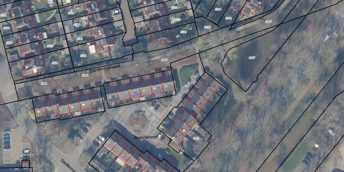 Het perceel waarop Blankenhampad 1 staat heeft een oppervlakte van 593 m². Dit is een groot perceel. De perceeloppervlakte wordt geregistreerd door het Kadaster. Gedetailleerde informatie over de maten van dit perceel kunt u vinden in het rapport Kadastrale kaart met maatvoering van Blankenhampad 1.