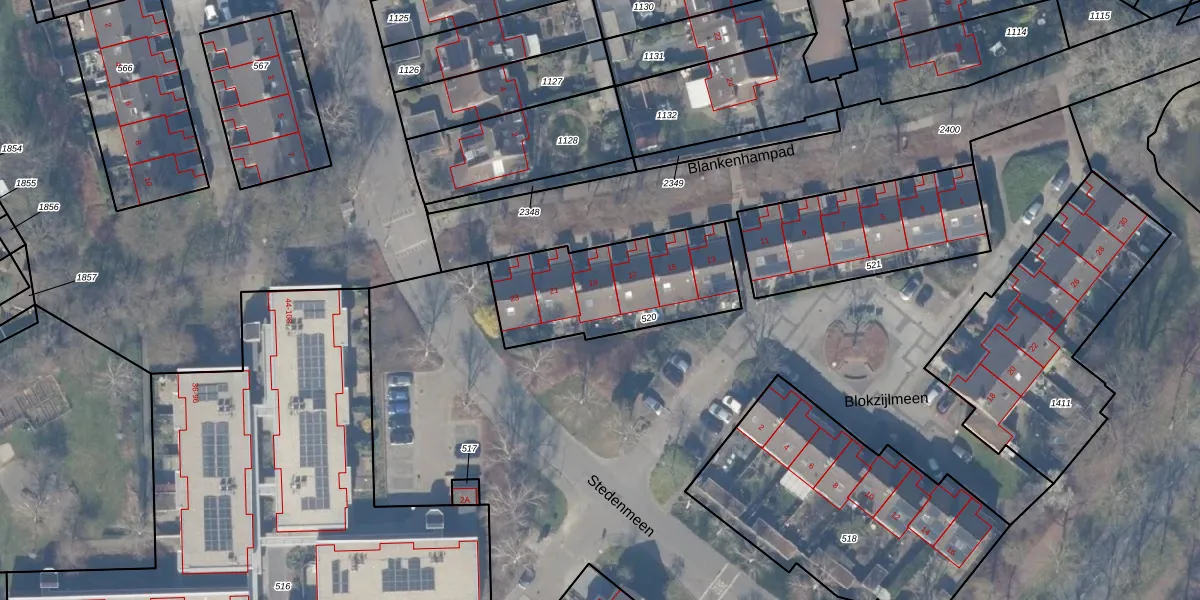 Het perceel waarop Blankenhampad 19 staat heeft een oppervlakte van 593 m². Dit is een groot perceel. De perceeloppervlakte wordt geregistreerd door het Kadaster. Gedetailleerde informatie over de maten van dit perceel kunt u vinden in het rapport Kadastrale kaart met maatvoering van Blankenhampad 19.