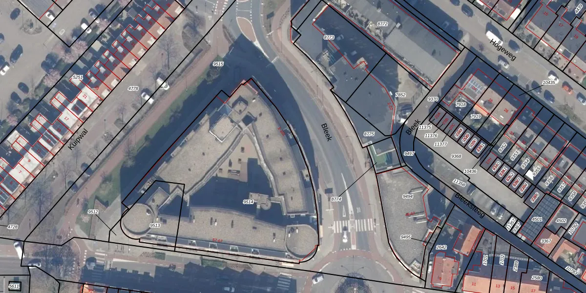 Bleek 100 is gelegen op kadastraal perceel HDW00D9514. Deze kadastrale aanduiding is uniek en wordt gebruikt door het Kadaster om eigendomsrechten en andere zakelijke rechten vast te leggen. Het perceel maakt onderdeel uit van de kadastrale gemeente Harderwijk.