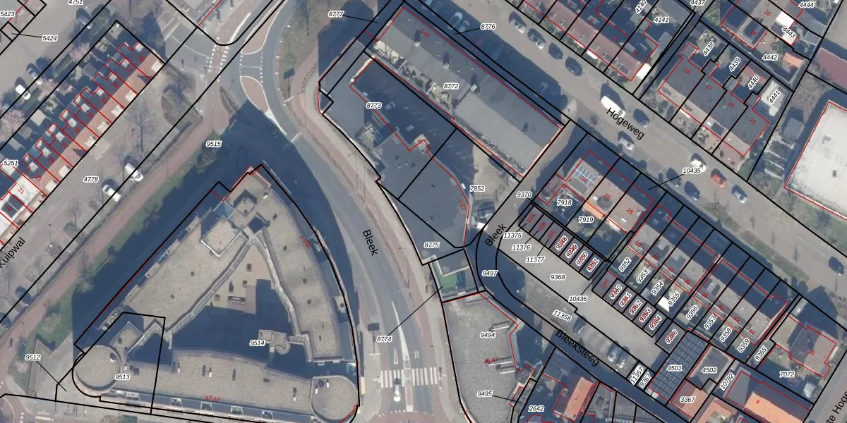 Het perceel waarop Bleek 23 staat heeft een oppervlakte van 442 m². Dit is een groot perceel. De perceeloppervlakte wordt geregistreerd door het Kadaster. Gedetailleerde informatie over de maten van dit perceel kunt u vinden in het rapport Kadastrale kaart met maatvoering van Bleek 23.