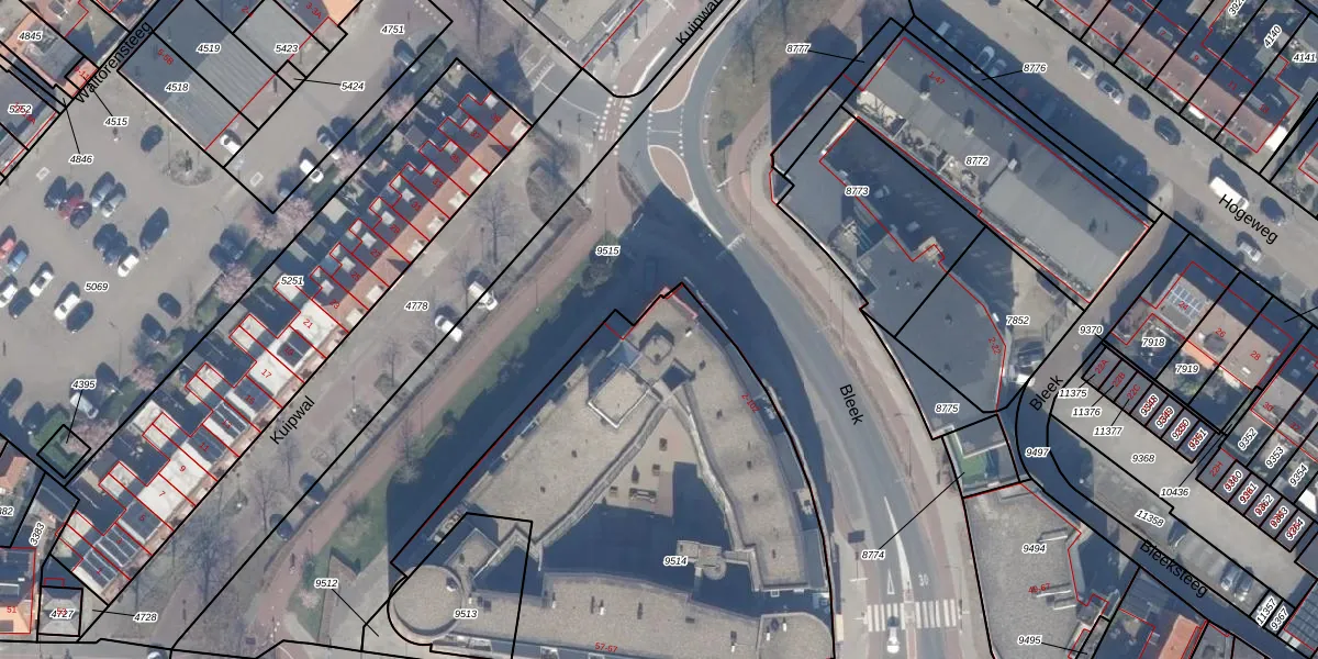 Het perceel waarop Bleek 42 staat heeft een oppervlakte van 2418 m². Dit is een zeer groot perceel. De perceeloppervlakte wordt geregistreerd door het Kadaster. Gedetailleerde informatie over de maten van dit perceel kunt u vinden in het rapport Kadastrale kaart met maatvoering van Bleek 42.