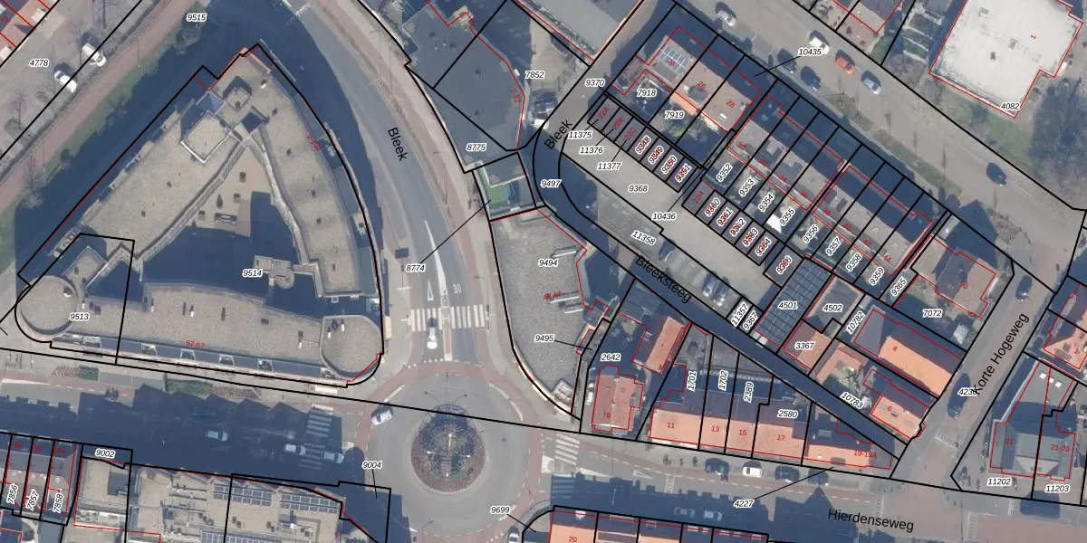 Het perceel waarop Bleek 55 staat heeft een oppervlakte van 565 m². Dit is een groot perceel. De perceeloppervlakte wordt geregistreerd door het Kadaster. Gedetailleerde informatie over de maten van dit perceel kunt u vinden in het rapport Kadastrale kaart met maatvoering van Bleek 55.