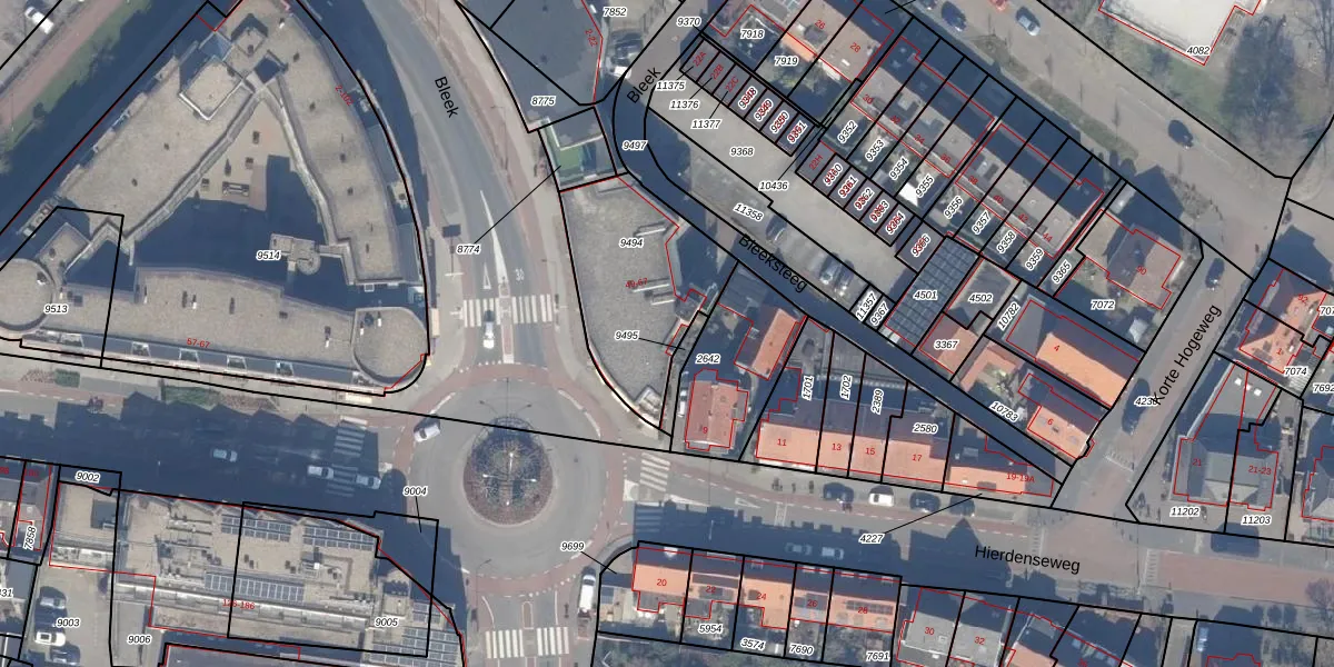 Het perceel waarop Bleek 65 staat heeft een oppervlakte van 565 m². Dit is een groot perceel. De perceeloppervlakte wordt geregistreerd door het Kadaster. Gedetailleerde informatie over de maten van dit perceel kunt u vinden in het rapport Kadastrale kaart met maatvoering van Bleek 65.