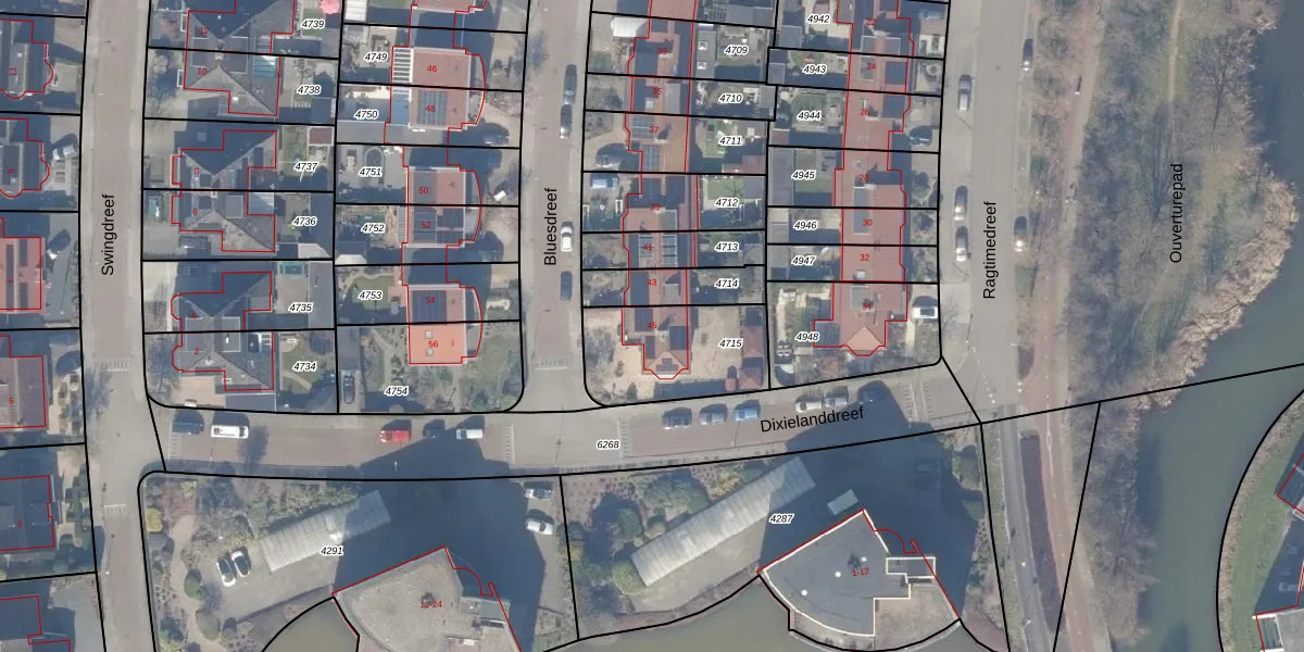 Gebruik de zoekbalk of klik op een perceel voor informatie over de adressen binnen dit perceel.
