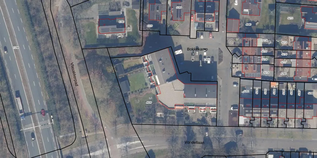 Het perceel waarop Bokkekamp 50 staat heeft een oppervlakte van 2325 m². Dit is een zeer groot perceel. De perceeloppervlakte wordt geregistreerd door het Kadaster. Gedetailleerde informatie over de maten van dit perceel kunt u vinden in het rapport Kadastrale kaart met maatvoering van Bokkekamp 50.