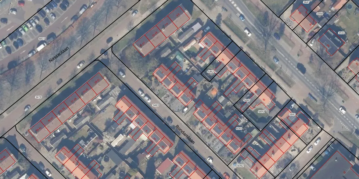 Bondamlaan 5 is gelegen op kadastraal perceel HDW00D6093. Deze kadastrale aanduiding is uniek en wordt gebruikt door het Kadaster om eigendomsrechten en andere zakelijke rechten vast te leggen. Het perceel maakt onderdeel uit van de kadastrale gemeente Harderwijk.