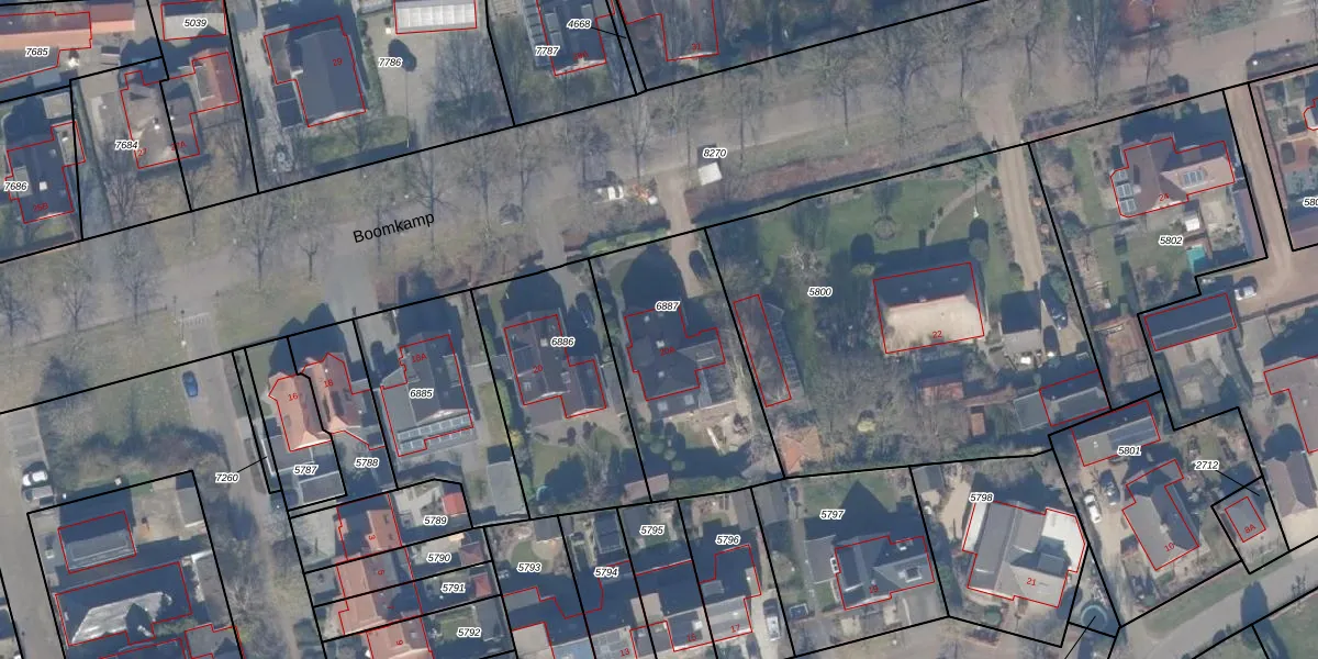 Het perceel waarop Boomkamp 20-A staat heeft een oppervlakte van 775 m². Dit is een groot perceel. De perceeloppervlakte wordt geregistreerd door het Kadaster. Gedetailleerde informatie over de maten van dit perceel kunt u vinden in het rapport Kadastrale kaart met maatvoering van Boomkamp 20-A.