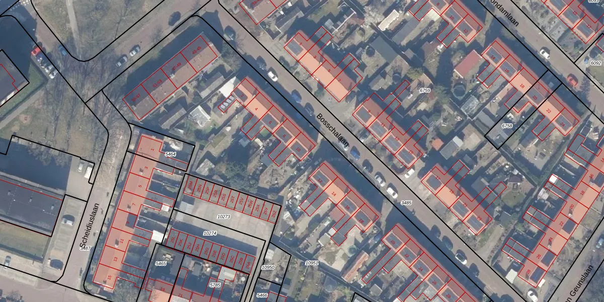 Het perceel waarop Bosschalaan 10 staat heeft een oppervlakte van 6430 m². Dit is een zeer groot perceel. De perceeloppervlakte wordt geregistreerd door het Kadaster. Gedetailleerde informatie over de maten van dit perceel kunt u vinden in het rapport Kadastrale kaart met maatvoering van Bosschalaan 10.