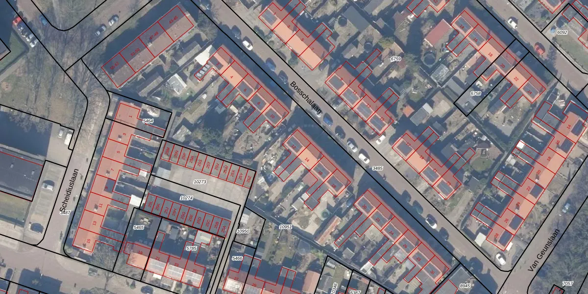 Het perceel waarop Bosschalaan 12 staat heeft een oppervlakte van 6430 m². Dit is een zeer groot perceel. De perceeloppervlakte wordt geregistreerd door het Kadaster. Gedetailleerde informatie over de maten van dit perceel kunt u vinden in het rapport Kadastrale kaart met maatvoering van Bosschalaan 12.