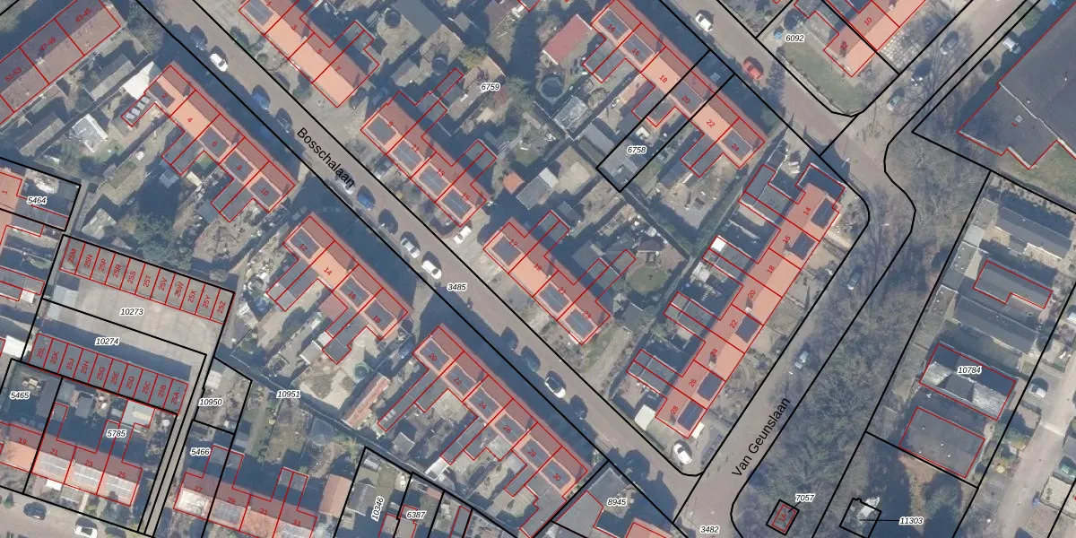 Het perceel waarop Bosschalaan 19 staat heeft een oppervlakte van 8334 m². Dit is een zeer groot perceel. De perceeloppervlakte wordt geregistreerd door het Kadaster. Gedetailleerde informatie over de maten van dit perceel kunt u vinden in het rapport Kadastrale kaart met maatvoering van Bosschalaan 19.
