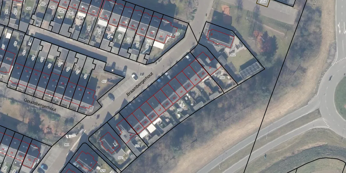 Het perceel waarop Braambergerhout 49 staat heeft een oppervlakte van 1527 m². Dit is een zeer groot perceel. De perceeloppervlakte wordt geregistreerd door het Kadaster. Gedetailleerde informatie over de maten van dit perceel kunt u vinden in het rapport Kadastrale kaart met maatvoering van Braambergerhout 49.
