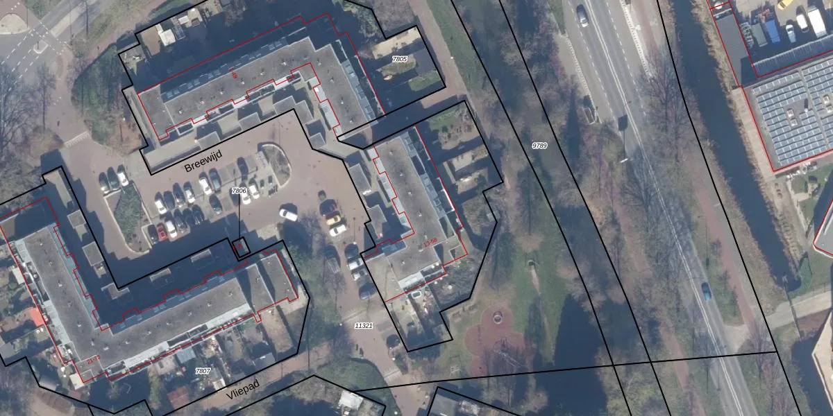 Het perceel waarop Breewijd 16 staat heeft een oppervlakte van 3675 m². Dit is een zeer groot perceel. De perceeloppervlakte wordt geregistreerd door het Kadaster. Gedetailleerde informatie over de maten van dit perceel kunt u vinden in het rapport Kadastrale kaart met maatvoering van Breewijd 16.