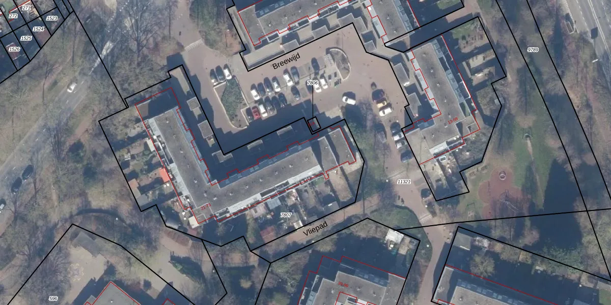 Het perceel waarop Breewijd 23 staat heeft een oppervlakte van 2855 m². Dit is een zeer groot perceel. De perceeloppervlakte wordt geregistreerd door het Kadaster. Gedetailleerde informatie over de maten van dit perceel kunt u vinden in het rapport Kadastrale kaart met maatvoering van Breewijd 23.