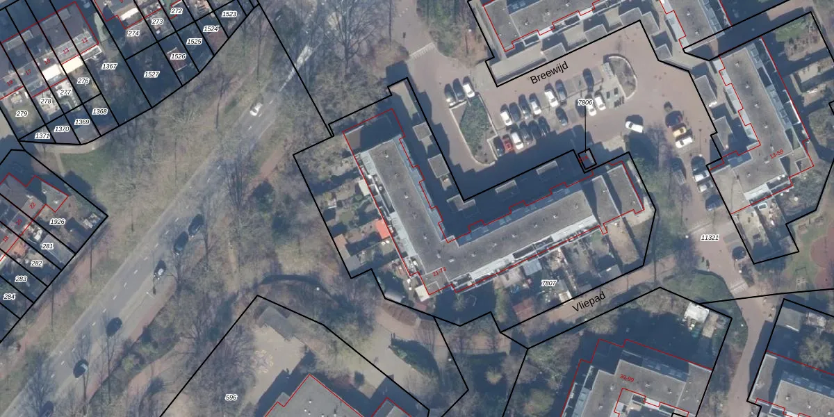 Het perceel waarop Breewijd 32 staat heeft een oppervlakte van 2855 m². Dit is een zeer groot perceel. De perceeloppervlakte wordt geregistreerd door het Kadaster. Gedetailleerde informatie over de maten van dit perceel kunt u vinden in het rapport Kadastrale kaart met maatvoering van Breewijd 32.