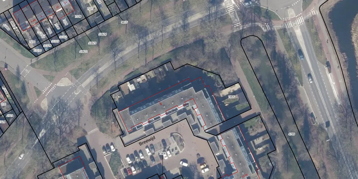 Het perceel waarop Breewijd 42 staat heeft een oppervlakte van 3675 m². Dit is een zeer groot perceel. De perceeloppervlakte wordt geregistreerd door het Kadaster. Gedetailleerde informatie over de maten van dit perceel kunt u vinden in het rapport Kadastrale kaart met maatvoering van Breewijd 42.