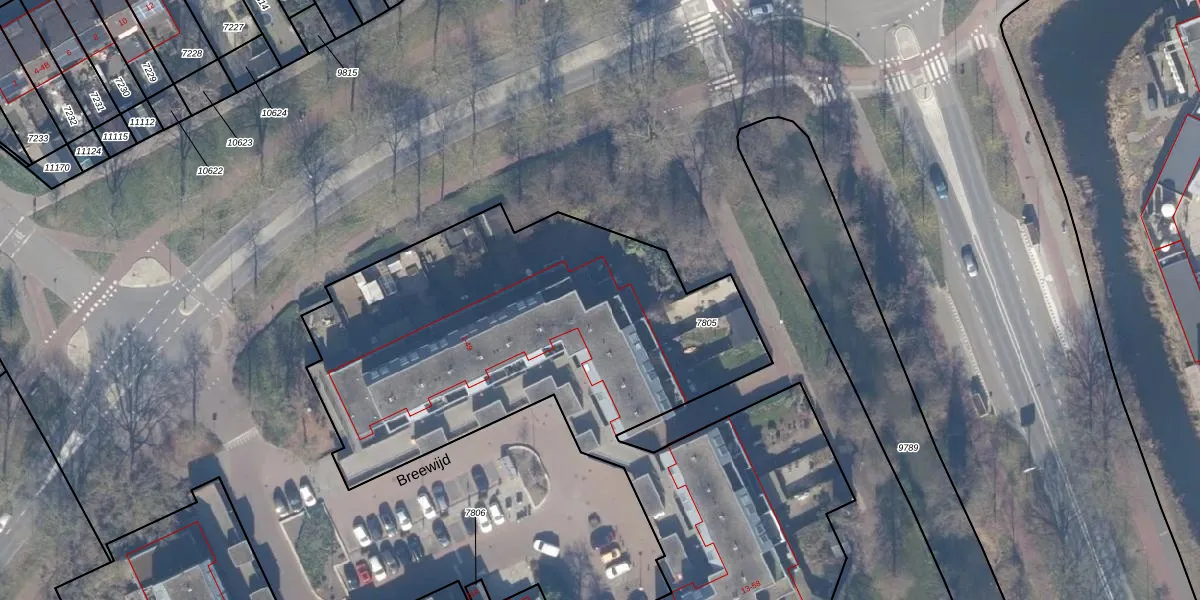 Het perceel waarop Breewijd 45 staat heeft een oppervlakte van 3675 m². Dit is een zeer groot perceel. De perceeloppervlakte wordt geregistreerd door het Kadaster. Gedetailleerde informatie over de maten van dit perceel kunt u vinden in het rapport Kadastrale kaart met maatvoering van Breewijd 45.