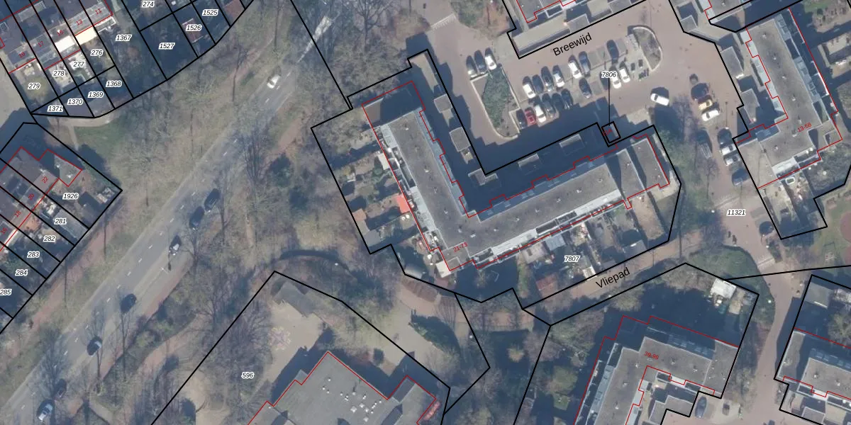 Het perceel waarop Breewijd 69 staat heeft een oppervlakte van 2855 m². Dit is een zeer groot perceel. De perceeloppervlakte wordt geregistreerd door het Kadaster. Gedetailleerde informatie over de maten van dit perceel kunt u vinden in het rapport Kadastrale kaart met maatvoering van Breewijd 69.