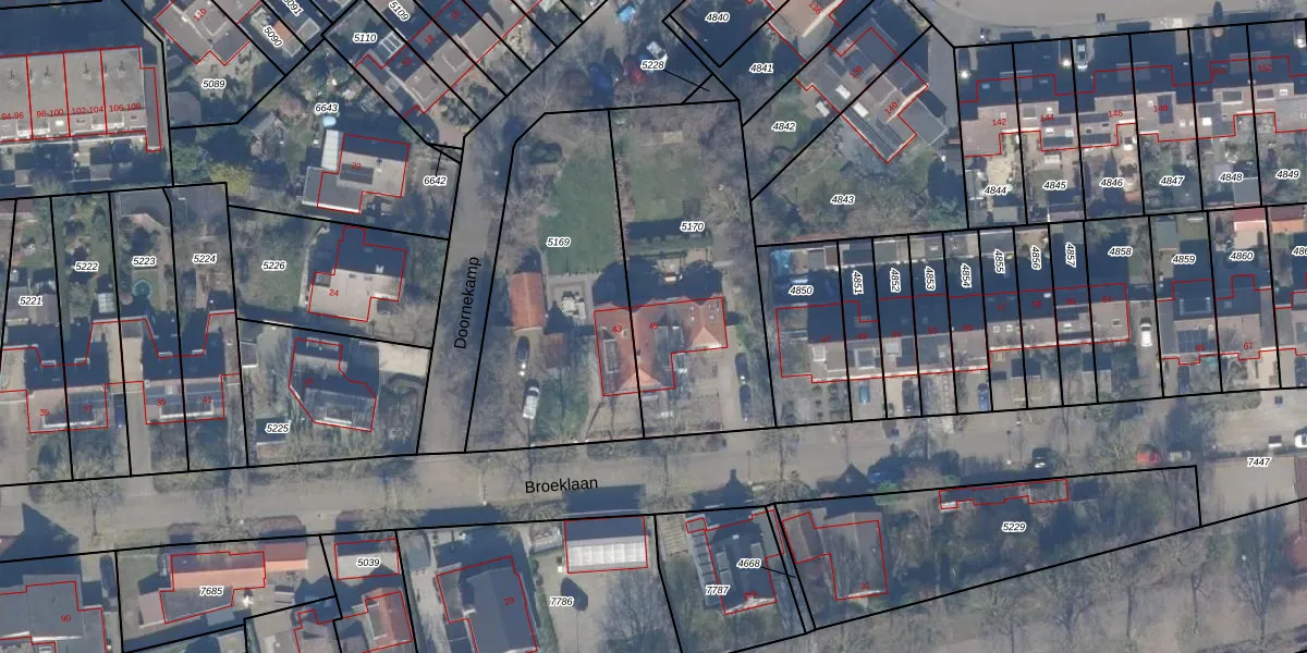 Het perceel waarop Broeklaan 45 staat heeft een oppervlakte van 1020 m². Dit is een zeer groot perceel. De perceeloppervlakte wordt geregistreerd door het Kadaster. Gedetailleerde informatie over de maten van dit perceel kunt u vinden in het rapport Kadastrale kaart met maatvoering van Broeklaan 45.