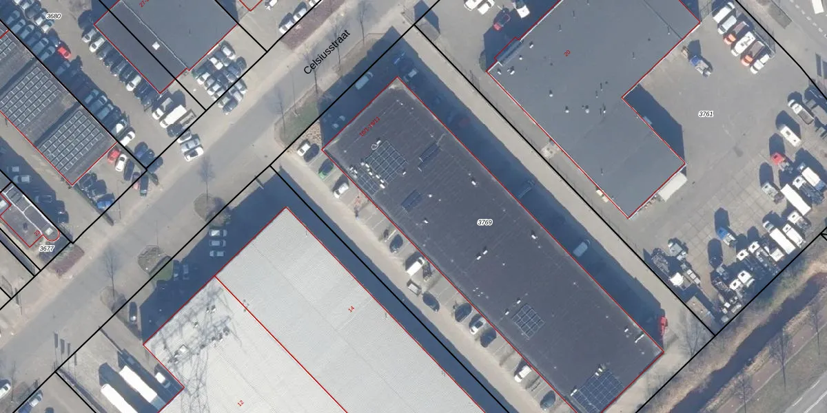 Het perceel waarop Celsiusstraat 16-4 staat heeft een oppervlakte van 5140 m². Dit is een zeer groot perceel. De perceeloppervlakte wordt geregistreerd door het Kadaster. Gedetailleerde informatie over de maten van dit perceel kunt u vinden in het rapport Kadastrale kaart met maatvoering van Celsiusstraat 16-4.