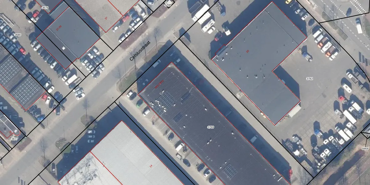 Het perceel waarop Celsiusstraat 18-3 staat heeft een oppervlakte van 5140 m². Dit is een zeer groot perceel. De perceeloppervlakte wordt geregistreerd door het Kadaster. Gedetailleerde informatie over de maten van dit perceel kunt u vinden in het rapport Kadastrale kaart met maatvoering van Celsiusstraat 18-3.