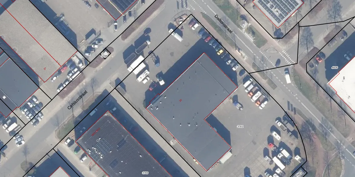 Het perceel waarop Celsiusstraat 20 staat heeft een oppervlakte van 6140 m². Dit is een zeer groot perceel. De perceeloppervlakte wordt geregistreerd door het Kadaster. Gedetailleerde informatie over de maten van dit perceel kunt u vinden in het rapport Kadastrale kaart met maatvoering van Celsiusstraat 20.