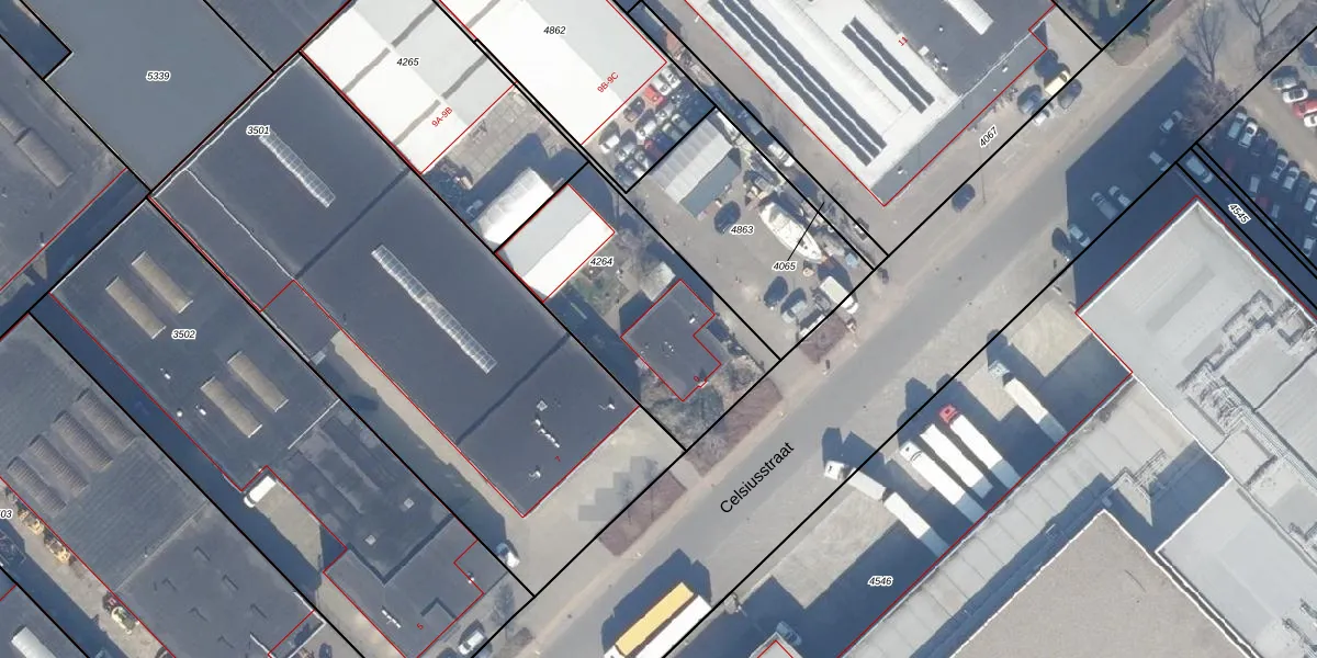 Het perceel waarop Celsiusstraat 9 staat heeft een oppervlakte van 840 m². Dit is een groot perceel. De perceeloppervlakte wordt geregistreerd door het Kadaster. Gedetailleerde informatie over de maten van dit perceel kunt u vinden in het rapport Kadastrale kaart met maatvoering van Celsiusstraat 9.