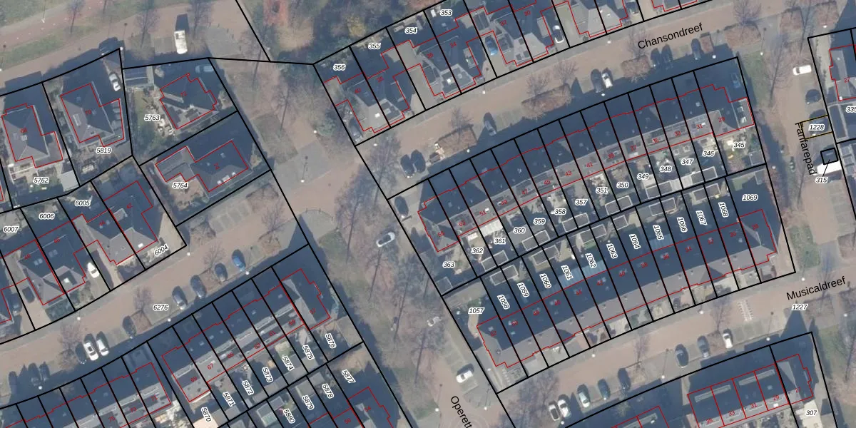 Gebruik de zoekbalk of klik op een perceel voor informatie over de adressen binnen dit perceel.
