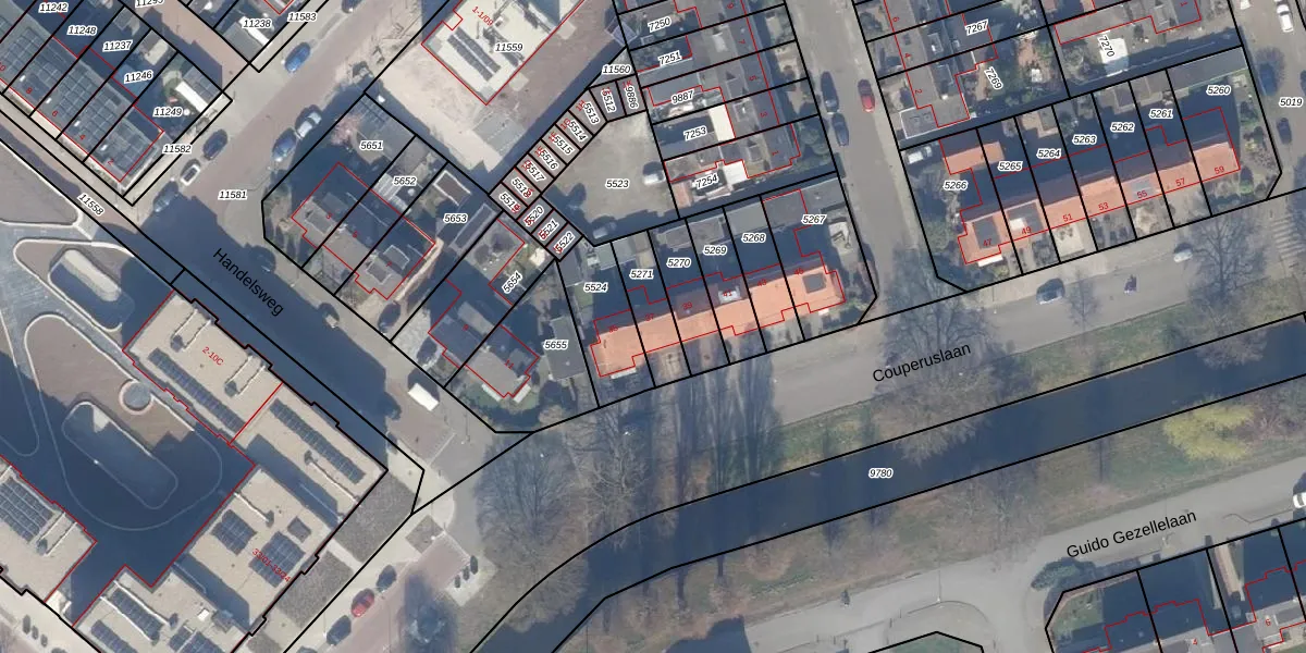 Gebruik de zoekbalk of klik op een perceel voor informatie over de adressen binnen dit perceel.