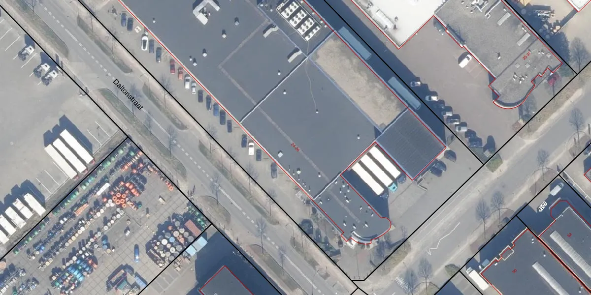 Het perceel waarop Daltonstraat 24 staat heeft een oppervlakte van 1,4 ha. Dit is een zeer groot perceel. De perceeloppervlakte wordt geregistreerd door het Kadaster. Gedetailleerde informatie over de maten van dit perceel kunt u vinden in het rapport Kadastrale kaart met maatvoering van Daltonstraat 24.