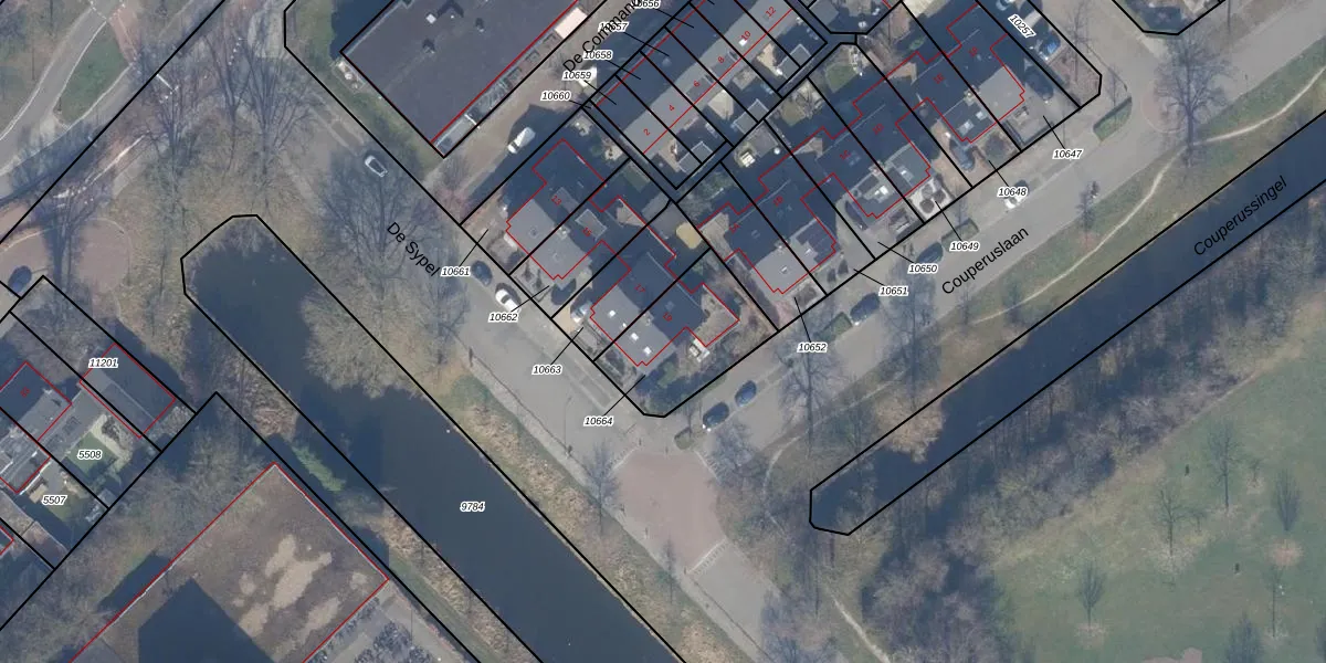Het perceel waarop De Sypel 19 staat heeft een oppervlakte van 353 m². Dit is een groot perceel. De perceeloppervlakte wordt geregistreerd door het Kadaster. Gedetailleerde informatie over de maten van dit perceel kunt u vinden in het rapport Kadastrale kaart met maatvoering van De Sypel 19.