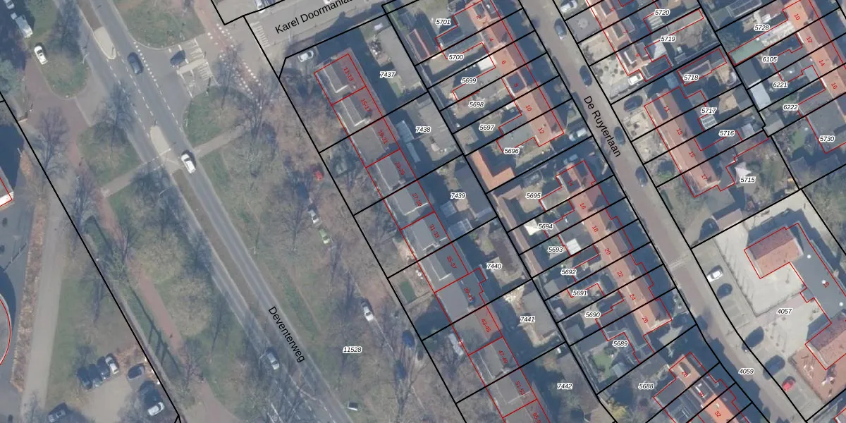 Het perceel waarop Deventerweg 29 staat heeft een oppervlakte van 506 m². Dit is een groot perceel. De perceeloppervlakte wordt geregistreerd door het Kadaster. Gedetailleerde informatie over de maten van dit perceel kunt u vinden in het rapport Kadastrale kaart met maatvoering van Deventerweg 29.