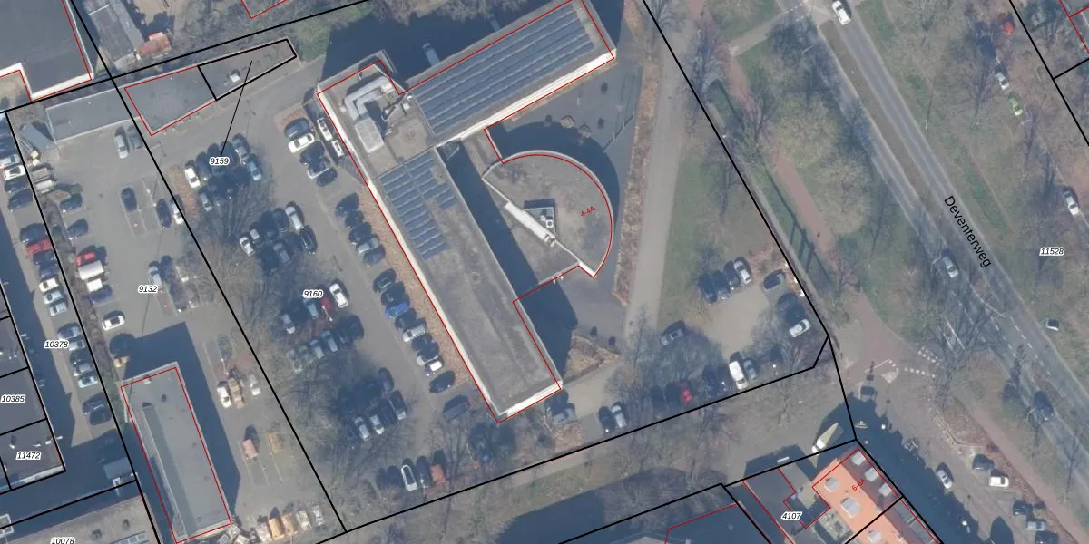 Het perceel waarop Deventerweg 4-A staat heeft een oppervlakte van 8410 m². Dit is een zeer groot perceel. De perceeloppervlakte wordt geregistreerd door het Kadaster. Gedetailleerde informatie over de maten van dit perceel kunt u vinden in het rapport Kadastrale kaart met maatvoering van Deventerweg 4-A.