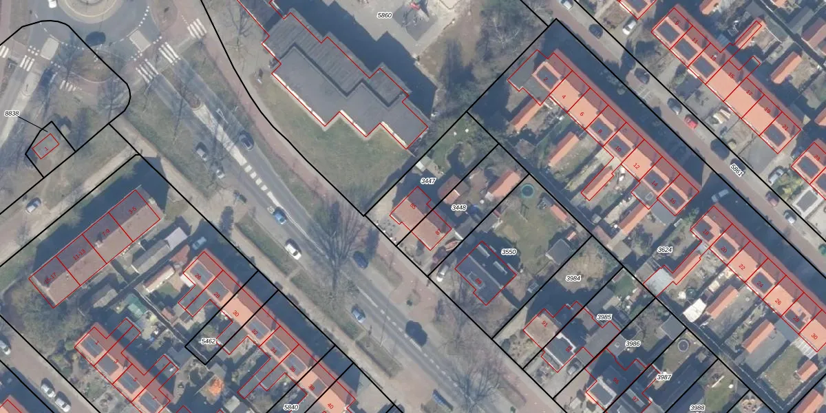 Gebruik de zoekbalk of klik op een perceel voor informatie over de adressen binnen dit perceel.