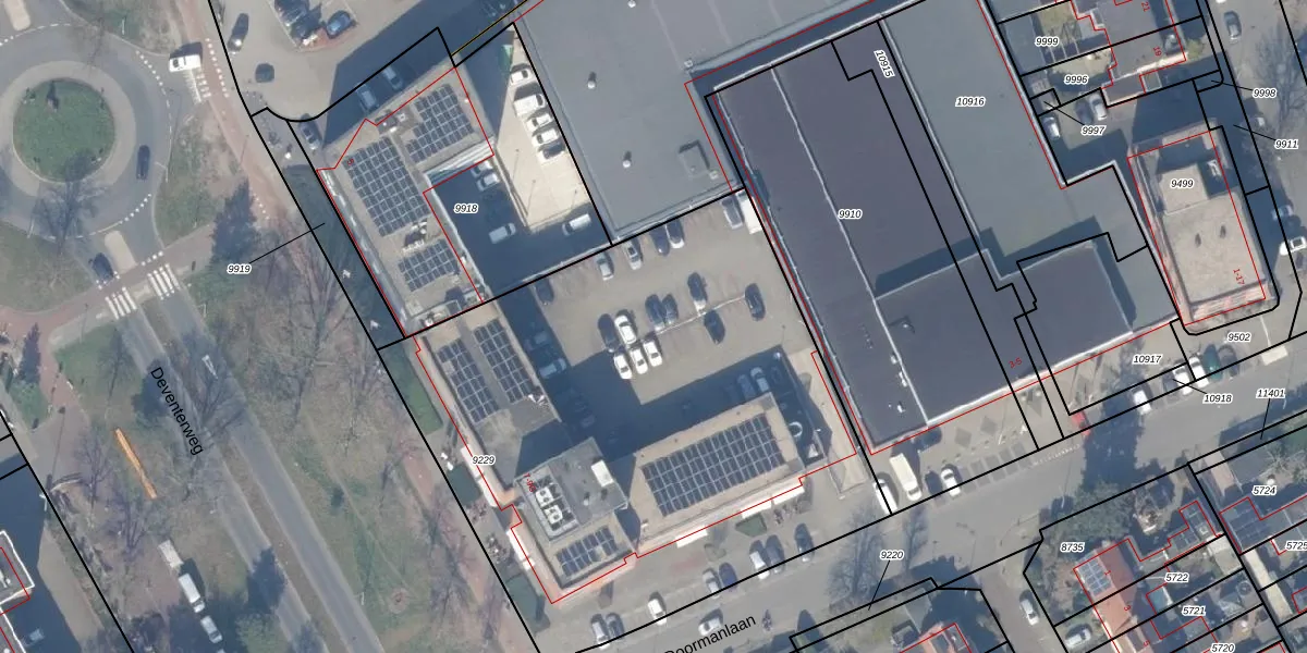 Het perceel waarop Deventerweg 9-E staat heeft een oppervlakte van 3274 m². Dit is een zeer groot perceel. De perceeloppervlakte wordt geregistreerd door het Kadaster. Gedetailleerde informatie over de maten van dit perceel kunt u vinden in het rapport Kadastrale kaart met maatvoering van Deventerweg 9-E.