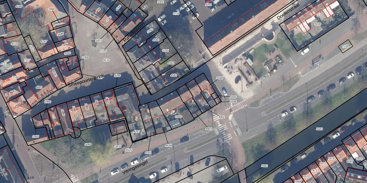 Het perceel waarop Doelenstraat 4 staat heeft een oppervlakte van 110 m². Dit is een middelgroot perceel. De perceeloppervlakte wordt geregistreerd door het Kadaster. Gedetailleerde informatie over de maten van dit perceel kunt u vinden in het rapport Kadastrale kaart met maatvoering van Doelenstraat 4.