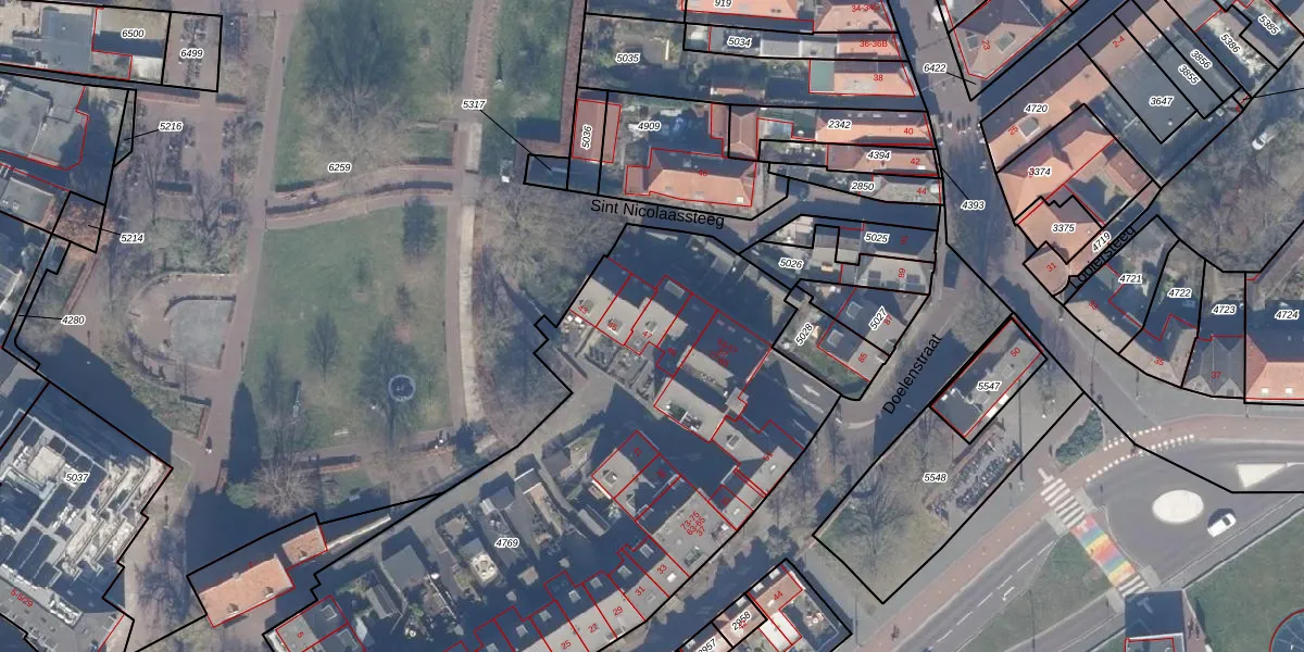 Het perceel waarop Doelenstraat 47 staat heeft een oppervlakte van 3365 m². Dit is een zeer groot perceel. De perceeloppervlakte wordt geregistreerd door het Kadaster. Gedetailleerde informatie over de maten van dit perceel kunt u vinden in het rapport Kadastrale kaart met maatvoering van Doelenstraat 47.