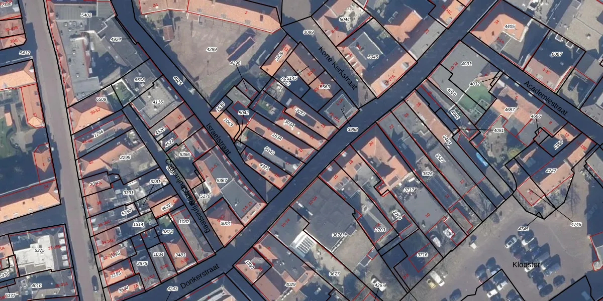 Het perceel waarop Donkerstraat 19 staat heeft een oppervlakte van 200 m². Dit is een middelgroot perceel. De perceeloppervlakte wordt geregistreerd door het Kadaster. Gedetailleerde informatie over de maten van dit perceel kunt u vinden in het rapport Kadastrale kaart met maatvoering van Donkerstraat 19.