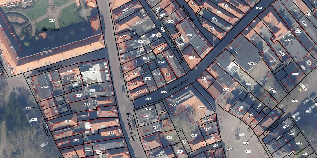 Het perceel waarop Donkerstraat 3-A staat heeft een oppervlakte van 88 m². Dit is een klein perceel. De perceeloppervlakte wordt geregistreerd door het Kadaster. Gedetailleerde informatie over de maten van dit perceel kunt u vinden in het rapport Kadastrale kaart met maatvoering van Donkerstraat 3-A.
