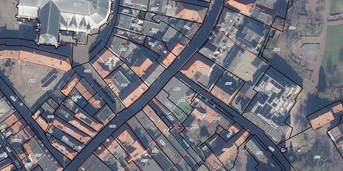 Donkerstraat 32 is gelegen op kadastraal perceel HDW00E4031. Deze kadastrale aanduiding is uniek en wordt gebruikt door het Kadaster om eigendomsrechten en andere zakelijke rechten vast te leggen. Het perceel maakt onderdeel uit van de kadastrale gemeente Harderwijk.