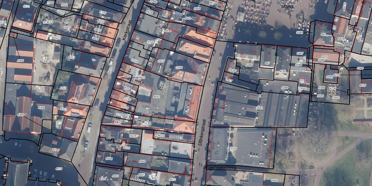 Donkerstraat 51-D is gelegen op kadastraal perceel HDW00E4932. Deze kadastrale aanduiding is uniek en wordt gebruikt door het Kadaster om eigendomsrechten en andere zakelijke rechten vast te leggen. Het perceel maakt onderdeel uit van de kadastrale gemeente Harderwijk.