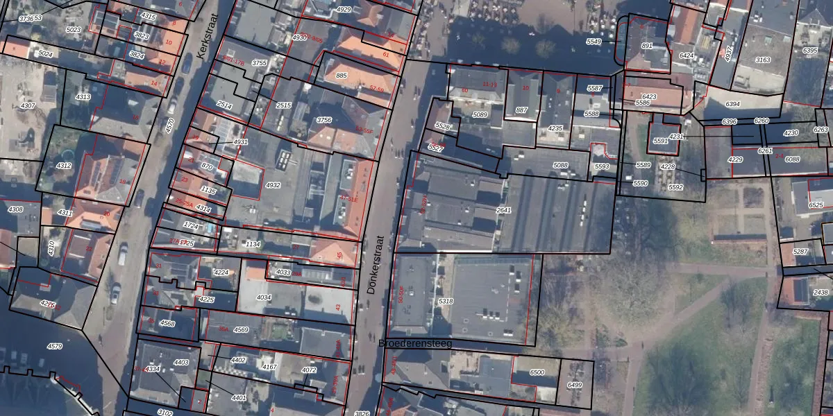 Het perceel waarop Donkerstraat 52-A staat heeft een oppervlakte van 1022 m². Dit is een zeer groot perceel. De perceeloppervlakte wordt geregistreerd door het Kadaster. Gedetailleerde informatie over de maten van dit perceel kunt u vinden in het rapport Kadastrale kaart met maatvoering van Donkerstraat 52-A.