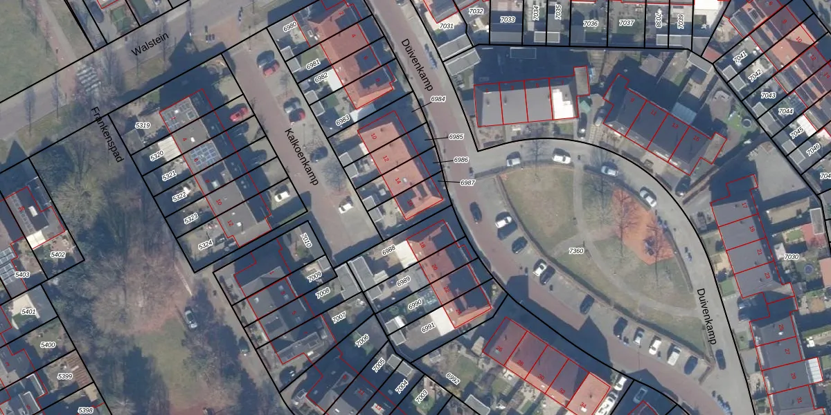 Gebruik de zoekbalk of klik op een perceel voor informatie over de adressen binnen dit perceel.