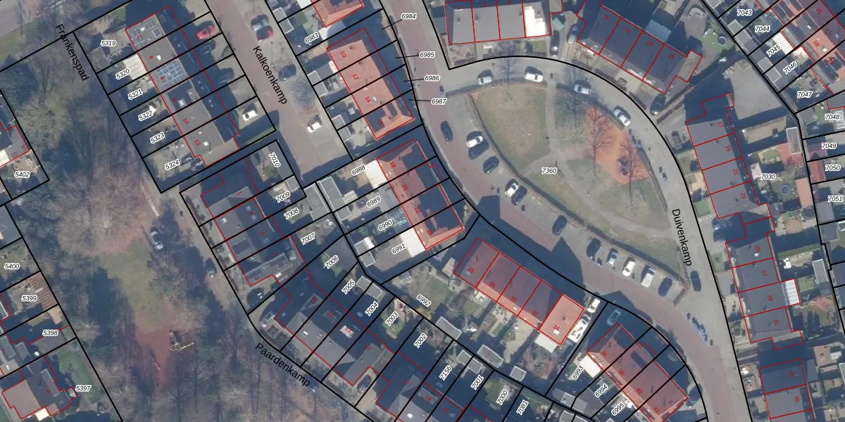 Het perceel waarop Duivenkamp 22 staat heeft een oppervlakte van 173 m². Dit is een middelgroot perceel. De perceeloppervlakte wordt geregistreerd door het Kadaster. Gedetailleerde informatie over de maten van dit perceel kunt u vinden in het rapport Kadastrale kaart met maatvoering van Duivenkamp 22.